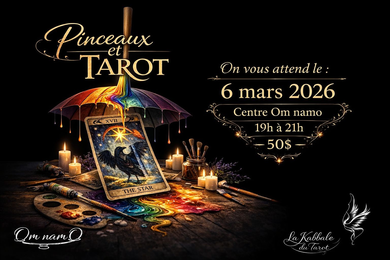 Bienvenue à notre événement spécial du 6 mars où nous combinons deux arts puissants : la peinture intuitive et le tarot. Peignez votre propre toile et recevez un tirage personnalisé de 15 minutes pour vous reconnecter à votre créativité, votre intuition et votre lumière intérieure.